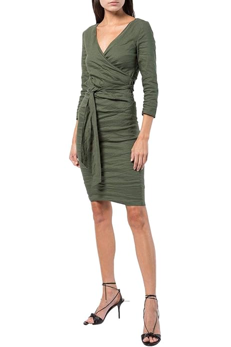Nicole Miller Combat Green Solid Cotton Metal Wrap Dress Us 14 At Amazon Women S Clothing Store
